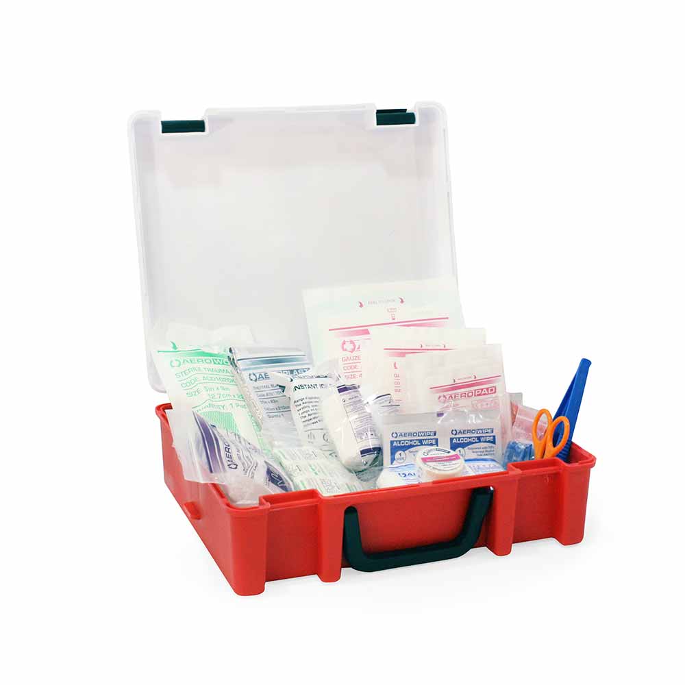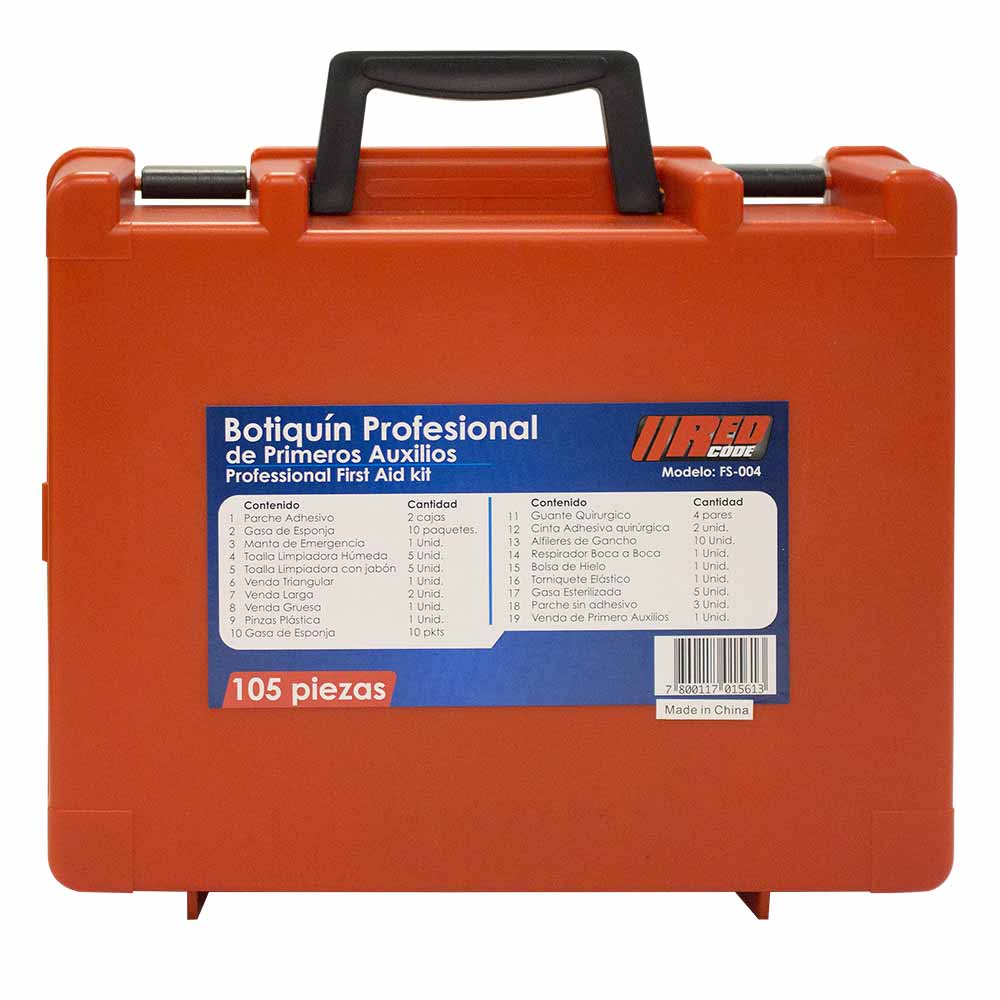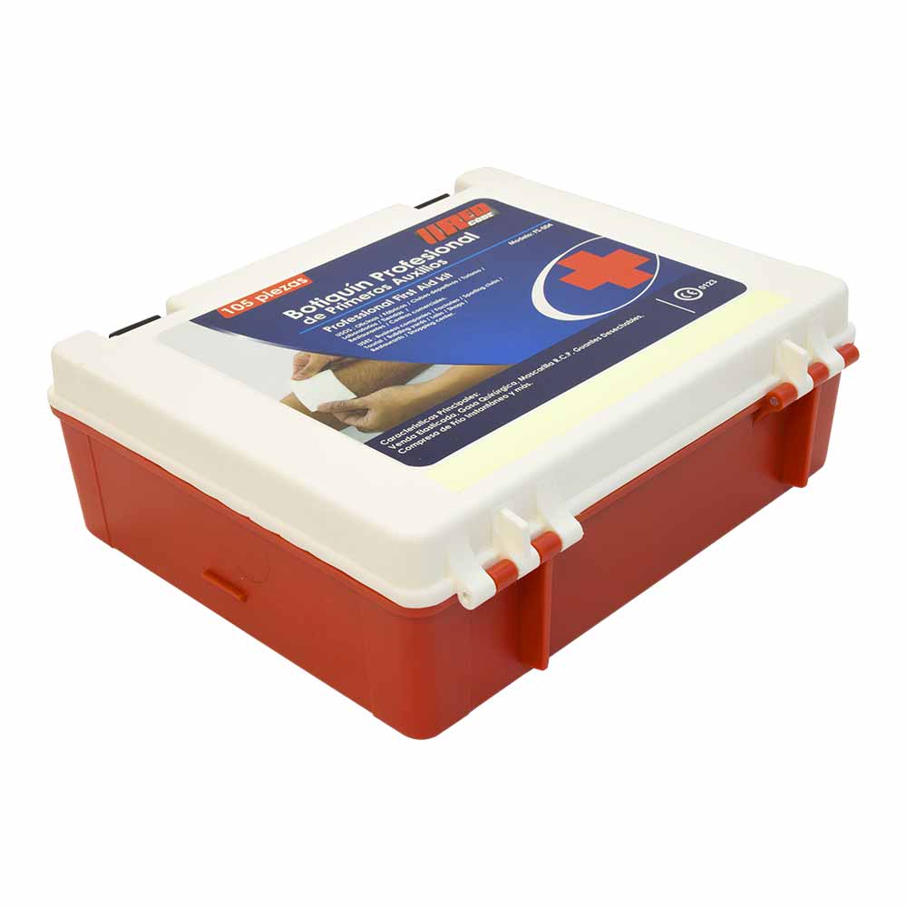 Pensado para empresas, talleres y espacios con grupos medianos. Este kit portátil (21 × 14 × 7 cm) incluye lo esencial para atender cortes, sangramientos y pequeñas emergencias, con insumos como vendajes, gasas, guantes y pinzas. Su diseño compacto facilita el transporte y almacenamiento, asegurando que siempre esté disponible cuando más se necesita.